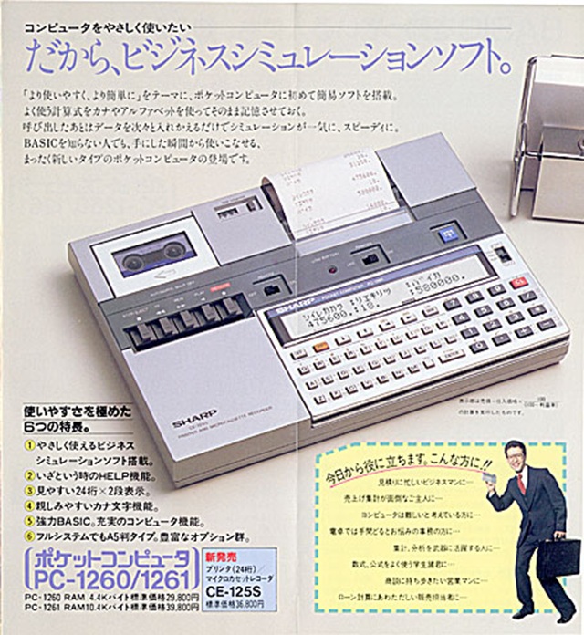 PC-1200 (関数電卓ピタゴラス)SC38661 ?MHz ¥29,000 (1977) ↓ PC-1300 SC38662 ?MHz ¥99,500 (1978) ↓ PC-1300S SC38662 ?MHz ¥115,000 (1979) ↓ PC-1210,1211 CMOS 4bit (SC43178) 256KHz ¥29,800/¥43,000 (1980) ↓ PC-1250,1251 ※2 ESR-H (SC61860) 576KHz ¥22,800/¥29,800 (1982) ↓ PC-1255 ¥35,800 (1983) ↓ PC-1245 ¥17,800 (1983) ↓ PC-1246 ESR (SC61720) ¥12,800 (1984) ↓ PC-1260,1261 SC43178 768KHz ¥29,800/¥39,800 (1984) ↓ PC-1247 ESR (SC61720) ¥16,800 (1985[海外向け]) ↓ PC-1246S ¥7,900 (1986/08) ↓ PC-1248 ¥10,000 (1986) ↓ PC-1262 ESR-H (SC61860) 768kHz ¥24,800 (1986) ↓ PC-1246DB,1248DB ¥9,800/¥11,000 (1987/09) PC-1280 ESR-H (SC61860) 768kHz ¥24,800 (1987/03)