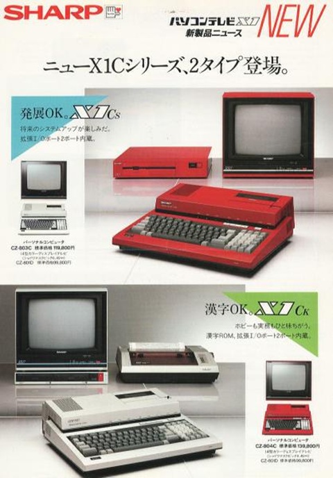 CZ-800C (X1)LH0080A(=Z80A) 4MHz ¥155,000 (1982/11) ↓ CZ-801C (X1C),802C (X1D) ※5 ¥119,800/¥198,000 (1983/10) ↓ CZ-803C (X1Cs),804C (X1Ck) ¥119,800/¥139,800 (1984/06) ↓ CZ-811C (X1F model10),812C (model20) ¥89,800/¥139,800 (1985/07) ↓ CZ-820C (X1G model10),822C (model20) ¥69,800/¥118,000 (1986/07) ↓ CZ-830C (X1twin) ※6 ¥99,800 (1987/12) X1R (Hudson改) Z80H 8MHz (1984)